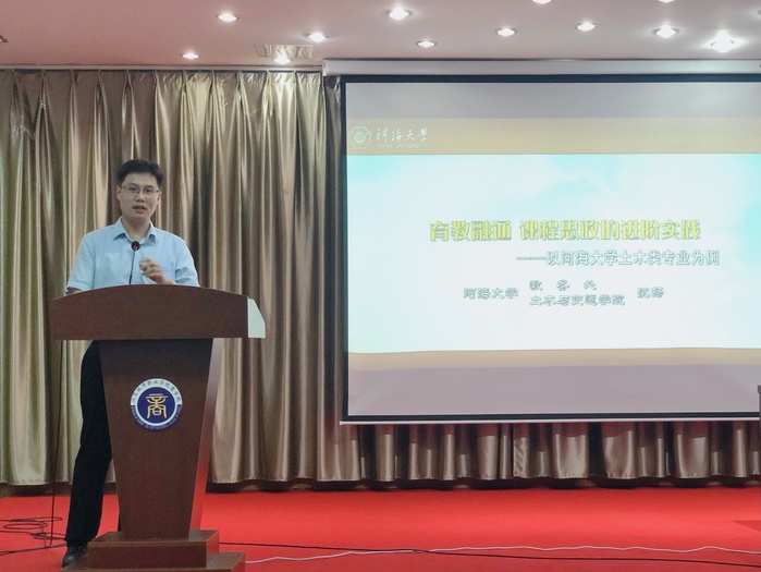 9月14日下午,商学院在东校区综合楼五楼报告厅开展课程思政教学设计专项培训,河海大学教务处处长沈扬教授应邀主讲。培训会由徐永兵副院长主持,学院全体教职工参加了本次培训。沈扬教授是岩土工程国家重点学科教授、博士生导师,河海大学土木工程专业负责人。作为宝钢优秀教师奖特等奖、霍英东高校青年教师奖一等奖获得者,江苏省青蓝工程优秀教学团队带头人,沈教授在课程思政方面具有丰富的经验。会上,沈教授以《育教融通,课程思政的进阶实践》为题,从内生动力、整体之道、局部之术、导用并进四个部分介绍了课程思政在教学设计中的实践。沈教授以“为谁学、如何学、学什么”引入,认为课程思政是以构建全员、全程、全课程育人格局的形式将各类课程与课程思想政治理论课同向同行,形成协同效应,把“立德树人”作为教育的根本任务的一种综合教育理念。沈教授以河海大学土木类专业为例,介绍了河海大学土木类专业课程思政二十条和课程思政矩阵图,分析了课程思政在彰显通识课程的传统属性、助力专业课程的去扁平化以及改革评教指标与评价方法方面的作用。随后,沈教授以《土力学》课程为例阐述了课程思政核心素材设计,分别从工程伦理、马列思想、工匠精神、人文融通四