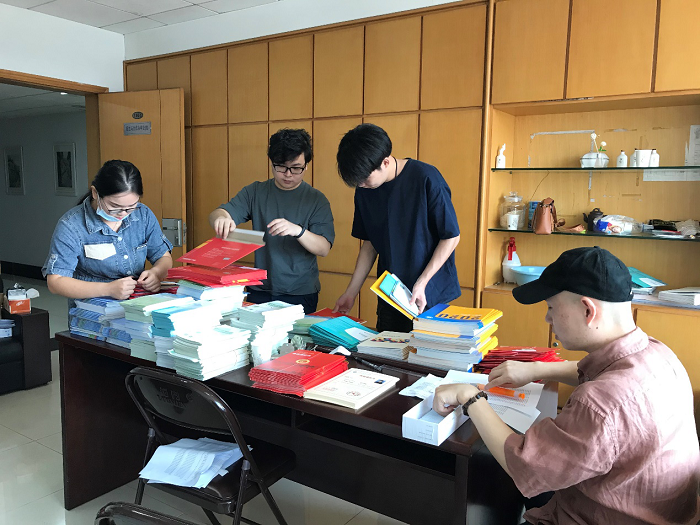 根据学院领导班子统一部署,各内设机构分工协作,积极配合,学院招生工作小组顺利完成高职对外招生宣传阶段性工作,目前进入投档录取阶段。2020年9月7日上午,设计学院的小伙伴们组成“新生通知书发放小分队”来到学校招生工作处,进行2020级新生录取通知书以及相关报到材料的核对、装袋、发放等工作。从学生姓名到银行卡信息核对、从助学贷款指南到入伍宣传册,大家分工协作、有条不紊。不到三个小时,383份快递信封完美封印,整装待发。这383份快递里,既有新生期待的录取通知书,还有来自设计学院的文化精神传递、办学理念宣传,更有来自设计学院大家庭的贴心关怀。在接下来的两天时间里,收到录取通知书的新生们,按照《设计学院新生宝典》指南,自觉申请加入“设计学院2020级设计学院新生答疑QQ群”,现已突破130人。带着对新学校的憧憬与期待,2020级的新生们在群内提出了各种各样的问题,比如:军训何时开始啊?生活用品需要随身带着吗?入伍了,如何办理学籍保留?笔记本电脑要不要携带?校园的食堂口味怎么样?艺术节有哪些活动……老师们、辅导员们、学长学姐们纷纷主动答疑,让新生们感受到了来自学院的亲切关怀。虽然距离报到还有一