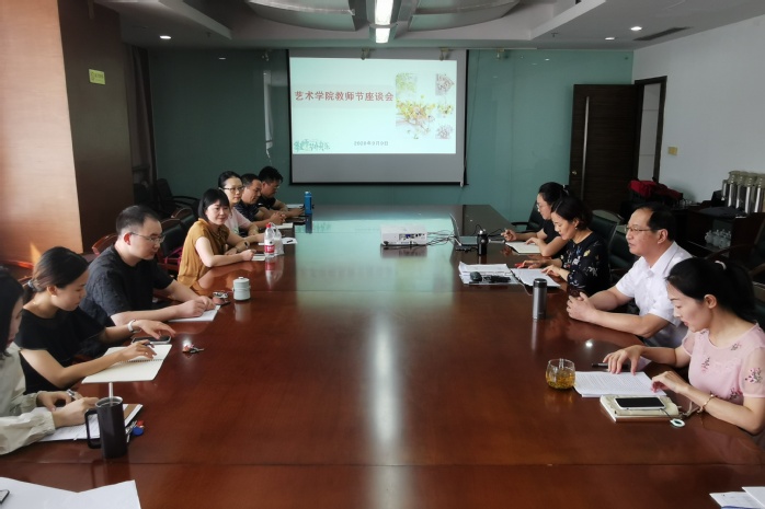 为庆祝我国第36个教师节,2020年9月9日上午9点,艺术学院在定淮门校区2楼第三会议室召开教职工座谈会,副校长尤佳春出席了座谈会。座谈会由副院长、党总支部副书记黄一斓主持,学院全体教职工参加了此次座谈会。座谈会上,黄一斓带领大家学习了习近平总书记关于教育的重要论述和践行“四有”好老师的要求。希望全体教职工按照习近平总书记的要求,努力成为先进思想文化的传播者、党执政的坚定支持者,更好担起学生健康成长,指导者和引路人的责任。戏曲系副教授朱云涛、文化休闲系副主任马睿和形象艺术系教师尹丹作为教师代表,分别从学科发展、专业建设、课程教学这三个方面畅谈了自己的工作体会,分享了成长的心路历程。艺术学院党总支部书记丁姝娟肯定了我院教师在“传帮带”方面发挥的积极作用,带领大家学习了高校师德手册中新时代高校教师的十项准则,并充满激情地朗诵诗歌一首,激励全体教职工进一步增强教师的责任感、使命感和荣誉感。最后,副校长尤佳春表达了对教师们的节日祝贺,在充分肯定我院教职工工作成果的同时,结合今年教师节的主题,对我院全体教职工提出了殷切希望和工作要求。他希望我院教职工将伟大抗疫精神内化为工作的动力,并贯彻落实到教