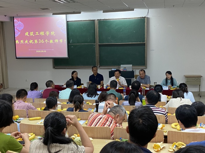 9月10日下午,建筑工程学院在应天校区召开了主题为“立德树人奋进担当,教育脱贫托举希望”的第36个教师节座谈会。建筑工程学院党政班子及全体教职员工参加了本次座谈会,党委常委吴光林副校长出席了本次会议。会议由建筑工程学院党总支部书记华永平主持。华永平书记在致辞中,首先向学院全体教师表达了节日问候,对各位老师过去一年里所取得的成绩表示诚挚祝贺和衷心感谢。侯新宇副院长在讲话中,首先简要总结了学院近一年来所取得的成就,其中不乏历史性、突破性成果,并强调学院的每一项工作都凝结了大家的心血与汗水,每一项成果都是大家辛勤付出的收获。同时指出,成绩只代表过去,希望各位老师能立足当前,着眼未来,脚踏实地,为学院未来的发展继续努力。此外,有十余位教师代表也做了感人至深的发言,并分别从职业道德素养、课程教学、科研工作、学生管理等方面畅谈了自己的工作体会和职业体验,分享了个人成长的心路历程。吴光林副校长在讲话中,首先代表学校党委向各位老师致以节日祝贺,并对教师代表发言中所蕴藏的正能量和表现出的真挚情怀表示赞赏和认同。他同时以“以学习提升自身境界、以担当提高育人水平、以行动推进四个发展”为题,对学院发展和全体教