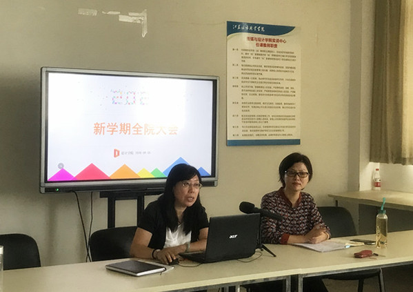 新学期,新气象,新希望。9月5日上午,设计学院在定淮门东校区实验楼505会议室召开新学期全院大会。会议由设计学院院长姜春艳主持,党总支部书记邹佳、副院长孙培松及全体教师参加了会议。会上,姜春艳首先介绍学院目前总体情况,随后对暑期开展的江开专业建设和课程建设、高水平骨干专业建设、高职专业群建设、十四五规划及教学准备、招生宣传及调研、实验实训管理及资产管理、师资培训、各项大赛、制度建设、学院二级考核分配等工作进行总结,同时对老师们的辛勤付出表示感谢,最后对下半年的工作重点以及近期工作进行了详细说明并提出具体要求。她强调,学院的发展和建设须紧紧围绕学校第二次党代会报告精神及具体要求,大家提高思想认识,打开眼界和思路,打通高职与开放渠道,推动学院工作平稳扎实地推进。学院班子成员“观大势、谋全局、干实事”,全体教师继续发扬迎难而上、勇于担当的优良作风,让设计学院真正发展成一个团结奋进、规范高效、突破创新的优秀学院。随后,姜春艳带领大家认真学习了《求是》杂志发表的习近平总书记的重要文章《思政课是落实立德树人根本任务的关键课程》,要求老师们深度挖掘各课程蕴含的思政教育元素和所承载的思政教育功能,使思