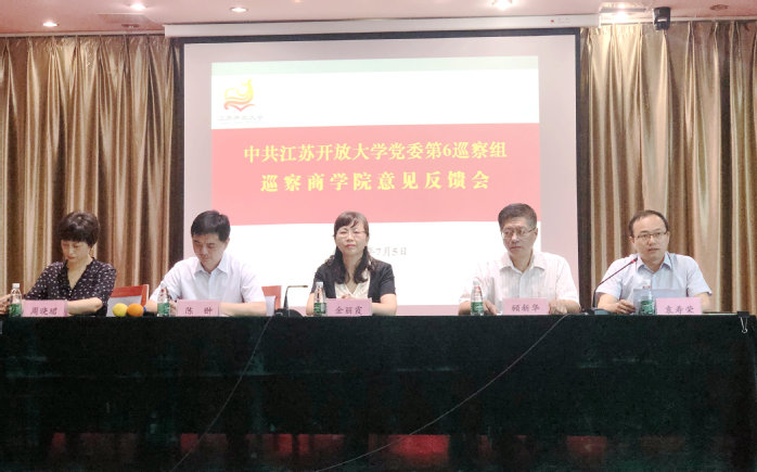 7月5日上午,党委第6巡察组在东校区召开巡察商学院意见反馈会,党委副书记、副校长、巡察组组长金丽霞,党委常委、纪委书记、巡察办主任顾新华,巡察组全体成员,纪委内设机构全体人员,商学院全体教职工出席了会议。会议由商学院党总支部书记袁寿荣主持。金丽霞通报了经党委常委会审议通过的巡察意见。2017年以来,商学院各方面存在的主要问题有:在党的政治建设方面,贯彻落实学校第二次党代会精神不深入、领导班子解放思想干事创业魄力不足;在党的思想建设方面,理论学习不够系统深入、落实意识形态工作责任制不到位;在党的组织建设方面,落实党建工作责任制不到位、贯彻民主集中制不严格;在党的作风建设方面,形式主义、官僚主义现象整治不到位、密切联系师生不够;在党的纪律建设方面,廉政风险点自查自防不到位、纪法教育效果不佳;在巩固发展反腐败斗争压倒性胜利方面,党风廉政建设存在薄弱环节、学院内控制度建设有待加强。金丽霞对下一阶段的巡察整改工作提出了要求,要切实加强党的领导,高度重视党建工作,不断完善制度建设,认真抓好整改落实。顾新华对商学院认领问题、狠抓整改提出了要求。一是认领问题要照单全收。今天反馈的问题是学校党委要求整改