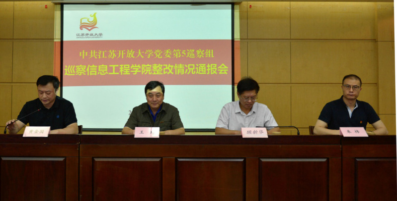 7月3日下午,信息工程学院在定淮门校区召开巡察整改情况通报会,学校党委第5巡察组组长王玮、巡察办主任顾新华、党委第5巡察组全体成员、纪委内设机构全体成员及信息工程学院全体教职员工出席了本次会议。会议由信息工程学院党总支部书记黄金国主持。黄金国首先代表信息工程学院就2019年10月以来的巡察整改情况作了较为详尽、系统的汇报。王玮同志对信息工程学院整改情况进行了点评,代表学校党委提出两点意见:一是信息工程学院巡察整改工作,学院党总支部承担了整改主体责任,学院领导班子带头,师生积极参与,做到了即知即改,责任到人,条条都整改、件件有着落,充分体现了大家的责任和担当,推动全面从严治党在学院层面见到了实效;二是全面整改结束后,信息工程学院领导班子和全体教职工,仍需对照新修订的《中共江苏开放大学委员会巡察工作实施办法》、学校党委常委会提出的新要求,继续对标找差、补齐短板、狠抓落实,紧紧围绕高水平开放大学建设和高质量发展要求,持续做好巡察“后半篇文章”。随后黄金国作表态发言,他首先代表学院党总支部、全体党政班子成员和全体师生对巡察组近一年来的辛勤工作和对信息工程学院工作的悉心指导表示衷心地感谢,并表示