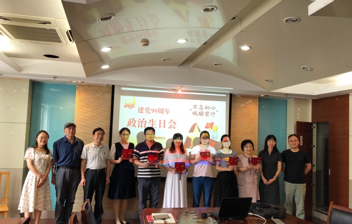 7月1日下午,在中国共产党成立99周年这个特殊的日子里, 机关十二支部在1705会议室开展了题为“回顾光辉历程 携手共创未来”的党日活动。活动共三项议程,一是党员集体过政治生日,重温入党誓词,分享初心故事;二是支部书记讲党课,党史、新中国史专题学习;三是“新时代新思想新作为基层说”和“习近平总书记的这句话让我最受教育”感悟交流。活动由支部书记徐亚主持。“一艘红船,承载着中华民族复兴的梦想;一面红旗,引领着伟大事业前行的方向。过去的征程我们并肩走过,未来的重任我们携手担当。”会议开始,徐亚为7位党员同志送上政治生日的问候和期许,这是大多数同志第一次过集体政治生日,大家都深受感动和鼓舞。紧接着全体党员一起重温入党誓词,李慧娟分享了自己的初心故事,徐亚从坚定理想信念、提高政治站位、强化宗旨意识、增强责任担当、坚持廉洁自律五个方面对支部党员提出了“不忘初心、担当作为”的具体要求,表示要进一步加强支部和党员的凝聚力战斗力,充分发挥党员的先锋模范作用。随后,徐亚给大家上了一堂题为《回顾光辉历程、汲取前行力量》的党课。她从中共一大拉开党史序幕,以党的生日由来为切入点,带着大家沿着历史轨迹、了解阶段划