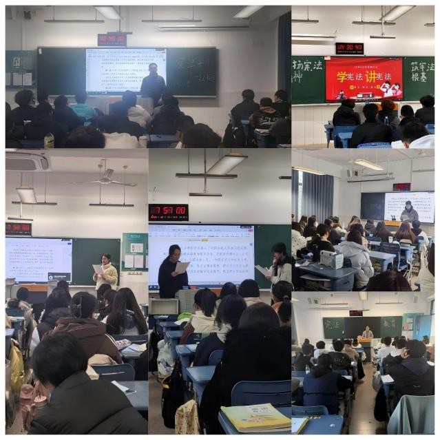 为深入学习贯彻习近平法治思想,切实增强全校师生宪法意识与法治观念,弘扬宪法精神,维护宪法权威,无锡开放大学于2025年12月1日至12月31日开展了“宪法学习月”系列活动。活动以“弘扬宪法精神,筑牢法治根基”为主题,通过形式多样、内容丰富的系列举措,在校园内营造了尊法学法守法用法的浓厚氛围,取得了良好的教育效果。学宪法晨读活动:朗朗书声传法治结合全国“宪法宣传周”部署要求,学宪法晨读活动分两阶段有序开展。12月1日至7日,每日7:40-8:00组织集中诵读,师生聚焦宪法序言及总纲核心条款;12月8日至31日,每周一、三、五晨读时间开展常态化诵读,重点学习青少年权益保护相关条款。活动通过集体领读、个人展示、释义讲解等多种形式,让学生在朗朗书声中熟悉宪法内容,在逐句品读中感悟宪法精神。主题班会评比:青春视角话宪法各班级围绕“宪法与青春同行”“宪法在我心中”等核心主题,精心策划开展了形式多样的学宪法主题班会。2023级关务班《知宪于心,守法于行》,2025级会计1班《拒绝校园欺凌,守护少年的你》,2022级计网2班《与人为善》,2024级艺术(普职融通)班《拒绝“按键伤人”》等班会精彩纷呈,