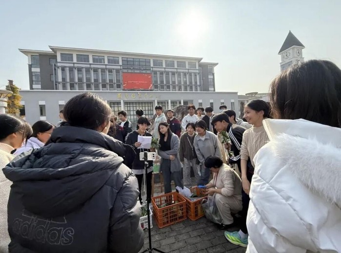 2025年12月11日,苏州市吴中区东吴外国语高等师范学校附属实验中学(以下简称“东吴外师附属实验中学”)的爱心义卖现场,一处“田间直供+云端直播”的特色摊位引爆全场。吴中开放大学电子商务专业的学子们架起直播设备,正带领该校的中学生们对着镜头热情推介亲手种植的纯天然蔬菜。“大家看,这是我们种的青菜,无农药,无添加,纯天然无公害!”略带紧张却充满兴奋的青涩嗓音里,藏着职普学子携手完成“从田间到直播间”的爱心接力,更生动诠释了“职普融通”背景下,劳动教育与专业实践深度融合的育人新范式,为校园添上了一道兼具温度与内涵的独特风景线。半学期前,这片菜地还只是学校的闲置空地。如今,在吴中开放大学农耕社学子的全程指导与共同改造下,这里已蜕变为一片生机盎然的劳动实践基地。作为职普融通的首批实践者,吴中开放大学的学子们以“小导师”身份,手把手传授农耕技巧,带着中学生们共同感悟劳动的价值与生命的成长。这场跨越职普界限的农耕实践,让劳动教育不再是课本上的抽象概念,而是可触摸、可参与的真实体验。职普携手,让劳动教育更有“专业味”本学期初,东吴外师附属实验中学农耕社正式成立,吴中开放大学商贸系学子化身首批“小导