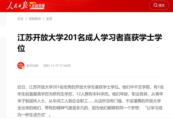 新华日报整版、交汇点新闻、人民日报新媒体、新华社客户端等数十家媒体报道:《江苏开放大学:站稳人民立场 服务江苏人民终身学习》