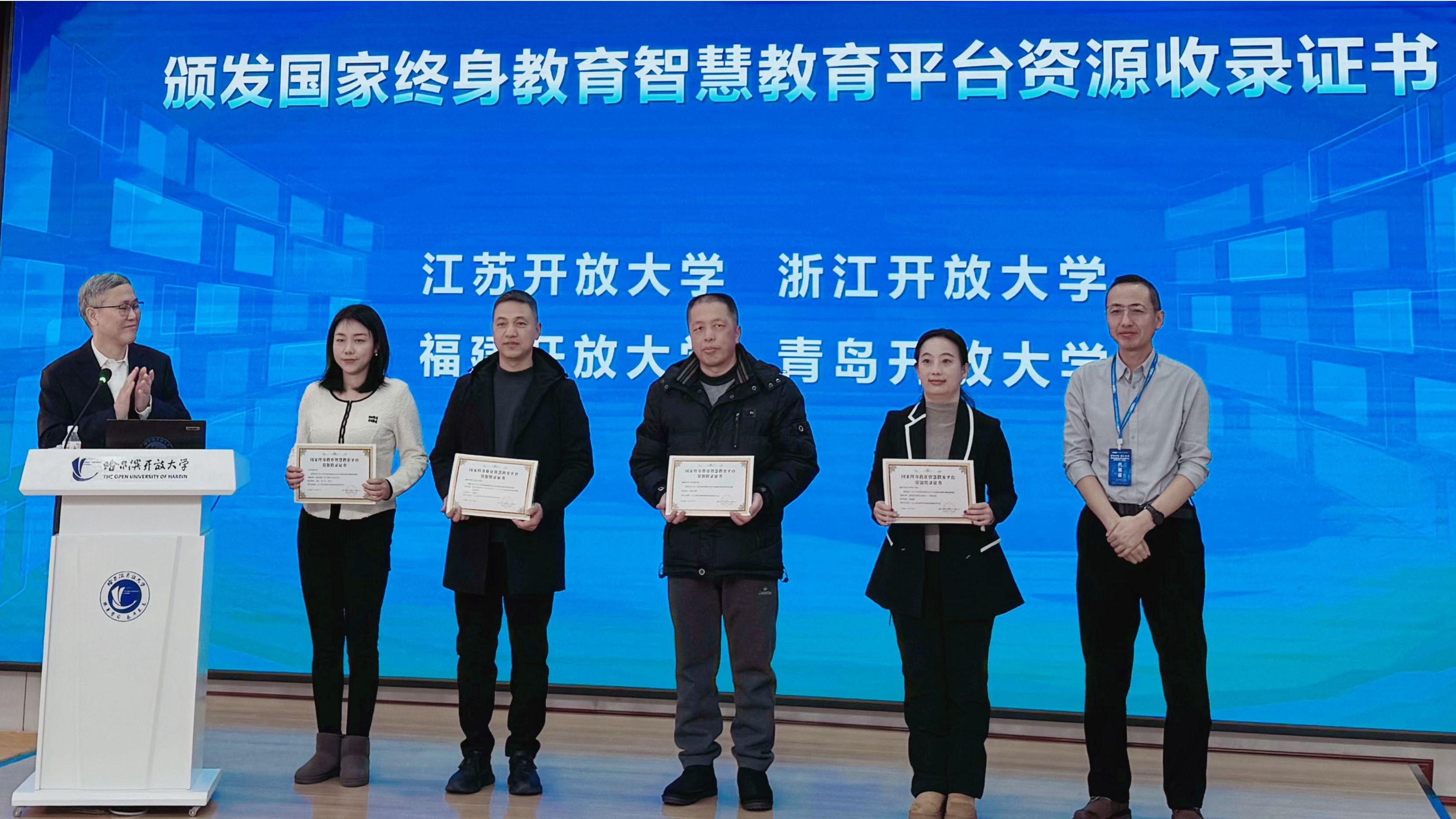 2026年1月9日,以“数聚资源 智汇共享”为主题的国家开放大学数字化学习资源中心研讨工作会在哈尔滨举办。国家开放大学党委副书记徐明军出席会议,我校党委常委、副校长罗逾兰带领资源建设中心一行参加了会议。会上公布了“国家终身教育智慧平台”资源收录名单。我校依托《开放大学 我的大学》电视及全媒体栏目打造的生活类特色资源《我的绝活天气查询+出行打车》成功入选,并正式上线国家终身教育智慧平台。本年度,我校将提升教师数字素养与资源建设能力作为重点任务,创新实施“课程资源数字制作成长营”,以“理念—技术—实践”为主线,通过系统化、项目化实训,推动教师从“资源使用者”向“课程设计师”转变。同时,学校深化数字资源共建共享,面向全省立项10项数字资源共建项目,与吴中开放大学等地方开大开展课程资源共享,成效显著,学校荣获国家开放大学2025年“数字化服务卓越单位”与“资源共享模范单位”称号。会上,罗逾兰副校长受聘为“网络教育数字化学习资源中心顾问”顾问。(文:相婷婷、图:相婷婷、审核:成蕾)
