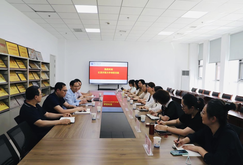 6月2-3日,校党委常委、副校长尤佳春带队,艺术学院党总支书记丁姝娟、招生工作处处长许浩等相关同志参加,赴盐城开展调研,深入了解校外教学点、市县开放大学在招生工作等方面遇到的问题与实际困难。2日下午调研组一行先后到盐城幼儿师范高等专科学校和盐城开放大学走访调研。盐城幼儿师范高等专科学校是经正式备案的江苏开放大学盐城幼儿师范高等专科学校校外教学点。盐城幼儿师范高等专科学校党委副书记、校长姜统华介绍了学校的历史沿革、教育教学改革、内涵建设等方面的情况,表示要适应新要求、新变化,特别在学历继续教育方面力求发挥优势、服务社会,以高水平专业群建设、师资培训和学生竞赛等为抓手积极提升办学质量。尤佳春表示,学校双方对校外教学点要紧紧围绕规范设置、严格管理、合理招生等关键点,切实贯彻教育部、教育部厅关于高等学历继续教育校外教学点管理的相关要求,密切联系配合,共同发挥优势,实现合作共赢。调研组成员与继续教育学院负责人还就如何扩大招生宣传、拓宽学历提升通道、提升教学资源质量等进行了交流探讨。6月3日上午调研组一行来到盐城滨海开放大学进行走访座谈调研。滨海开放大学校长皋建军带领参观了校园里的红色广场“舜臣园