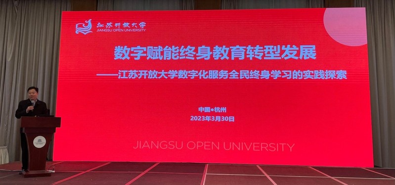 3月30日,由浙江开放大学主办的“中国式现代化视域下终身教育创新发展论坛”在浙江省德清县举行。我校党委常委、副校长吴光林及社会教育处相关同志受邀参加本次论坛。吴校长做了题为《数字赋能终身教育转型发展——江苏开放大学数字化服务全民终身学习的实践探索》的主旨发言。吴校长从数字赋能终身教育的价值、数字赋能终身教育的江苏实践、数字赋能终身教育的江苏实践成效等三个方面做了交流发言,分享了江苏开放大学数字赋能终身教育的经验,以教育信息化引领教育现代化,搭建数字化学习平台,打造面向各级各类学习需求的“教育超市”,推进“三类教育”资源迭代更新,初步形成数字化赋能全民终身学习的发展样态与模式。吴校长的报告受到了与会者的广泛关注和好评。3月31日上午,吴校长和社会教育处相关同志,参加了浙江开放大学举办的区域合作交流研讨会。参加研讨会的有上海开放大学、安徽开放大学、青海开放大学、湖北开放大学、成都开放大学、阿克苏开放大学等10所开放大学。会上,吴校长介绍了近几年江苏社区教育发展的做法和经验,以及江苏开放大学在高层次人才和优秀博士引进、国家级科研项目申报上的做法和成效,并表达了进一步深化区域合作的意愿。其他开