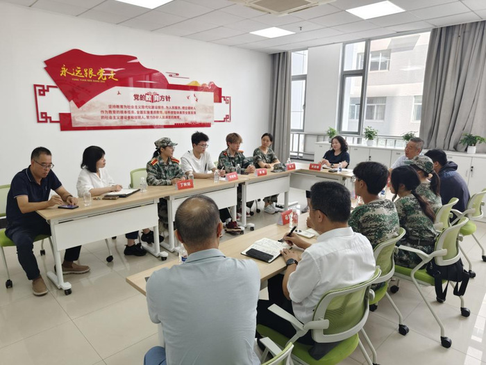 为践行“以学生为中心”育人理念,帮助新生更快适应校园生活、融入大学集体, 2025年9月22日,校党委副书记、校长张迎春,校党委常委、副校长杭祝洪一行深入应天校区军训训练场、“一站式” 学生社区服务中心,看望慰问军训师生,主持召开新生座谈会,围绕校园生活、学业规划等话题展开深入交流。校办、学生工作处、教务处、后勤管理处等相关部门负责人参加。校领导一行前往军训训练场,实地查看军训开展情况,亲切慰问承训教官和参训学生。张迎春与教官们深入交流,对他们科学的训练方法和严谨的组训作风表示充分肯定,并对他们的辛勤付出表示衷心感谢。她勉励参训学生珍惜军训机会,磨练意志、增强体质,以昂扬向上的精神面貌迎接大学新生活。座谈会上,校领导热情亲切的开场迅速拉近与新生的距离,现场氛围轻松融洽。新生代表们踊跃发言,纷纷分享入校以来的感受:对学校细致周到的迎新服务赞不绝口,从报到引导到宿舍安置,全程贴心服务让大家快速卸下陌生感;对整洁优美的校园环境十分满意,绿植环绕的道路、功能齐全的教学楼为学习生活增添了不少幸福感;同时也提及与同学相处的温暖点滴,辅导员和班主任的贴心指导,帮助大家更快打破陌生感、建立了深厚友谊。