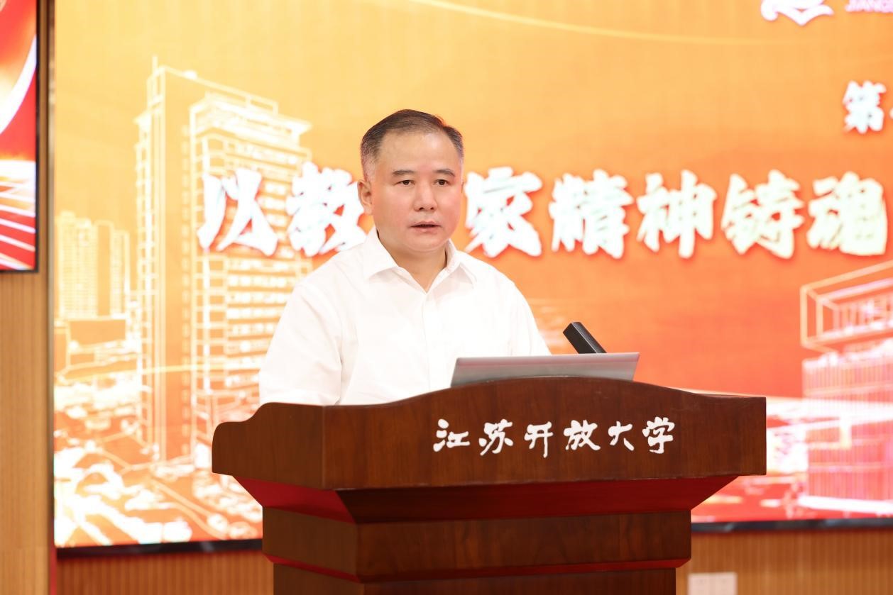 丹桂飘香,桃李金黄。9月9日上午,我校在定淮门校区二楼报告厅举行“以教育家精神铸魂强师,谱写教育强国建设华章” 为主题的第41个教师节庆祝活动。校领导、全体中层干部、光荣从教30年教职工、受表彰教职工代表以及来自全省办学系统的优秀教师代表和各二级学院相关教师齐聚一堂,共庆节日。活动由校党委常委、副校长刘贵友主持。校党委书记丁荣余发表了热情洋溢的致辞,代表学校领导班子向全体教职工致以节日问候。他指出,在2023年教师节前夕,习近平总书记致信全国优秀教师代表,首次提出“大力弘扬教育家精神”,并从理想信念、道德情操、育人智慧、躬耕态度、仁爱之心、弘道追求六个方面作出深刻阐述。他强调,弘扬教育家精神,需要每一位教职工以实际行动去书写、用持续努力去打磨、靠辛勤工作去实现。丁荣余以“家国、家园、家人”三个关键词,与大家分享了关于使命与责任的思考。一是心怀“家国”,勇担服务全民终身学习的光荣使命。家国情怀是开放大学教师的立身之本,要自觉将个人价值融入服务全民终身学习的伟大事业中,要牢记育人初心,落实立德树人根本任务,努力培养对国家和社会有贡献的人才;二是共建“家园”,彰显开放大学的独特风范。教师是学