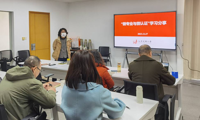 12月27日上午,“微专业与微认证”专题学习交流活动于定淮门校区三楼会议室召开。本次活动以“新型跨学科专业组织模式和能力取向人才培养评估模式“为主线,并就后续我校推进实施微专业微认证工作展开深入研讨,副校长张晓主持活动并讲话,教务处、学科建设处、社会教育处、信息化建设处、教学质量管理办公室、学分银行管理中心等部门负责人以及信息工程学院代表共同参加活动。张晓指出,微专业微认证工作具有灵活性、跨领域和融合性的独特优势,为学校推动学历和非学历继续教育融合发展、打破职业教育和继续教育边界开辟了可行路径,提供了重要抓手。各部门要及时更新理念,加快谋划实施。张晓就更好落实推进微专业微认证工作提出三点要求。一是面向各类群体,开展需求调研。有关部门要围绕校内学生、校内课程导师与学务导师、社区居民、产业工人以及地方政府等特定群体深入调研分析,提供优质教育项目,服务社会需求。二是发挥系统优势,鼓励先行先试。要充分激发市县开放大学的主观能动性,全面搜集市县开放大学需求和实践信息,鼓励有条件的市县开放大学先行先试,以点带面,协同联动,充分发挥系统办学优势。三是明确行动思路,分步有序推进。各部门要通盘谋划、相向