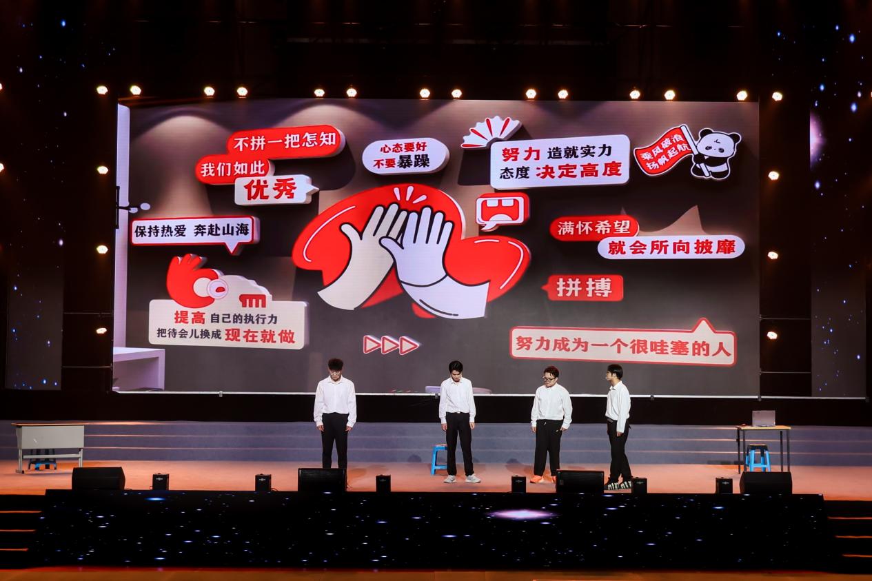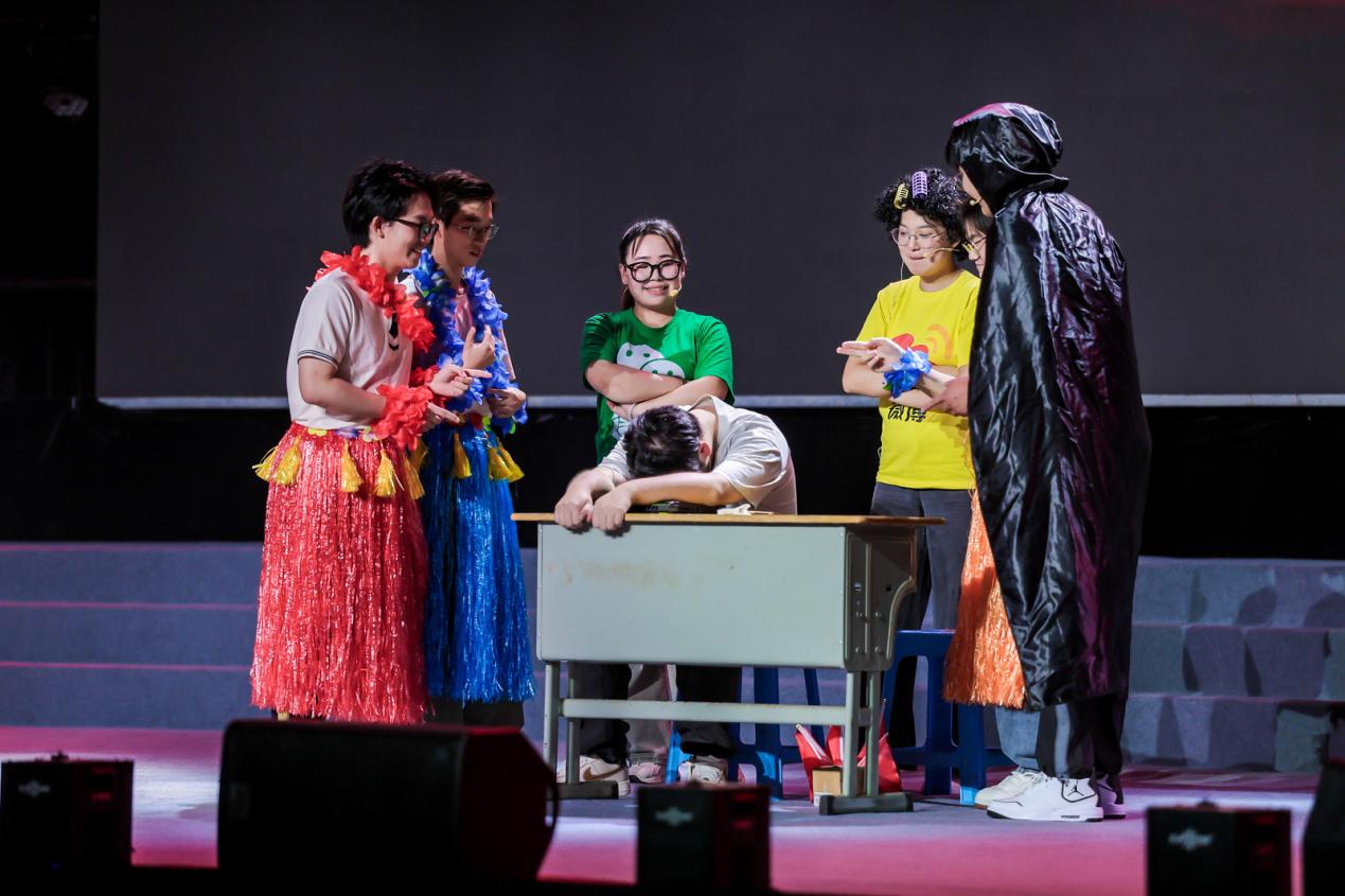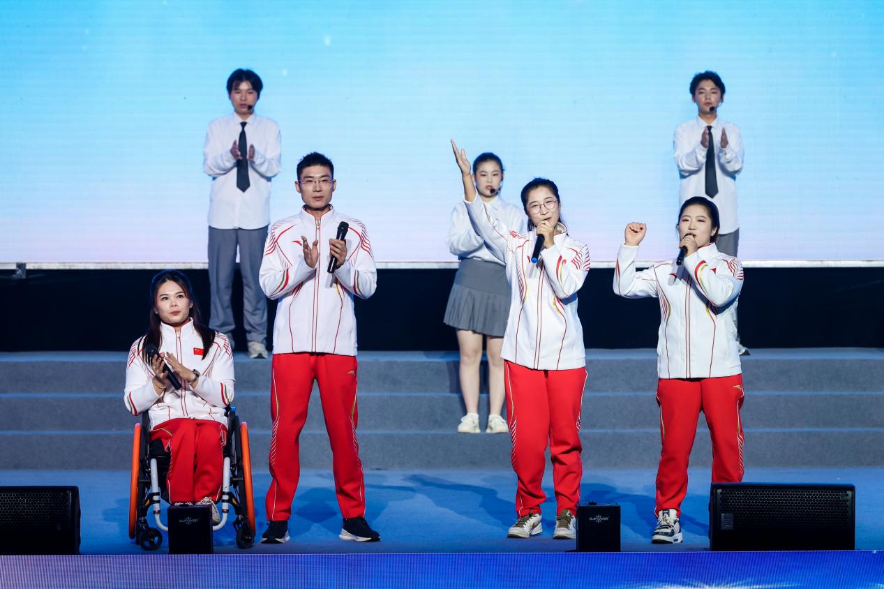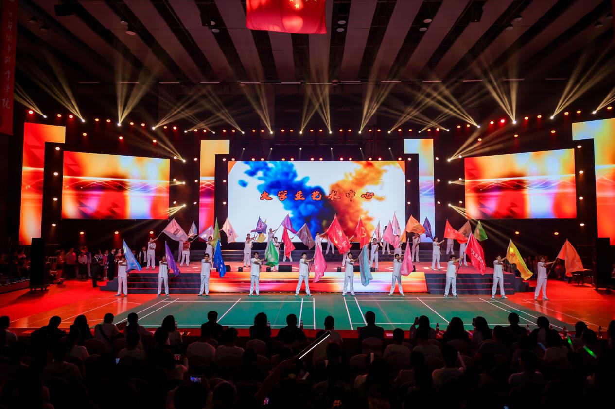 跑旗节目《旗开得胜》开场,新生在欢呼声中全面了解各学院、学生社团和大学生艺术团。信息工程学院的歌舞《乘风见夏》点亮青春校园的氛围;乡村振兴学院教师的歌曲《第一天》和商学院的小品《被偷走的时间》翻开了大学生活的序章;教育学院带来的花样跳绳表演《绳彩飞扬》惊呼连连,助推了新生们对体育活动的热情;公共管理学院组织的歌曲节目《我相信》,邀请到了曾经在巴黎残奥会上夺冠的四名校友运动员们,用歌声唱出心底的信念,传递给在座观众。