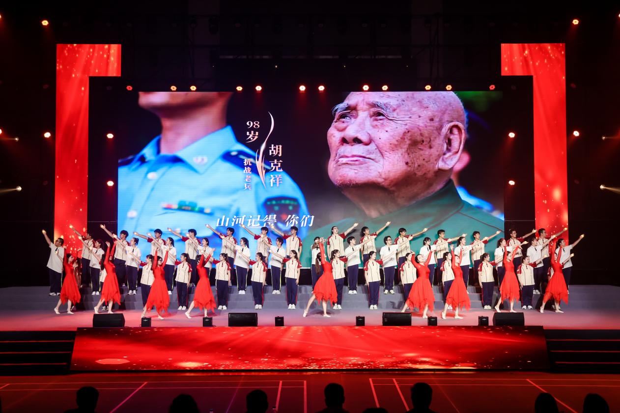 第三篇章中,艺术学院开放学生带来越剧《红楼梦·读西厢》展现了传统戏曲的韵味;环境生态学院舞蹈《灯火里的中国》带领观众感受祖国的繁荣昌盛,体会家国情怀;青年志愿者协会的音诗画《有我》是新生晚会经典节目,展现志愿者们不畏艰难,用行动扛起时代青年的使命的精神;最后,晚会在纪念中国人民抗日战争暨世界反法西斯战争胜利80周年主题歌曲《铭记》的歌舞中落幕。