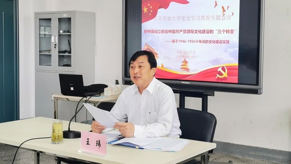 最后,王玮总结:同志们在学习党史的同时,要高度重视文化事业的作用体现和价值升华,要解放思想、与时俱进,既要以史为鉴,又要开拓创新,将坚持马克思主义的指导地位与实现创造性转化、创新性发展相结合,让提升文化建设成为凝聚全校教职工的有效抓手,进一步坚定信仰、信念、信心,以党史学习为重要契机,为高水平开放大学建设目标不懈奋斗,为“十四五”时期发展开好局、起好步。