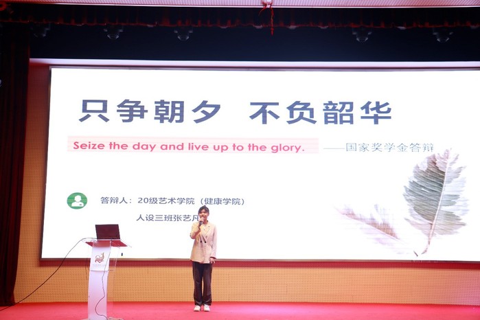 经过个人申请、学院推荐、学校审核等环节,共有9名精英学子作为候选人进入最后的答辩环节,角逐最终5个获奖名额。在个人陈述环节,各位候选人慷慨激昂、娓娓道来,以出众的学习成绩、丰硕的科研成果、出彩的竞赛名次、丰富的实践经历,展示出我校英才学子的青春风采。他们中有勇于担当、甘于奉献的“抗疫”志愿者;有乘风破浪、坚持不懈的创新创业能手;也有刻苦钻研、精益求精的职业技能大赛获奖者,他们的精彩表现博得了现场观众的阵阵掌声,答辩会现场气氛热烈,高潮迭起。在评委提问环节,各位候选人自信从容、应答自如,分享了自己平衡学业与课外活动的经验和方法,认为“最好的时间管理方法是自律,想要完成目标,必须合理规划、持之以恒”,得到现场观摩同学的认同,热烈的掌声再次响起。