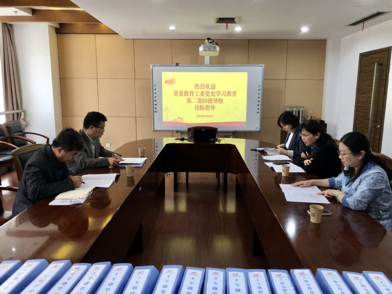 校党委常委、宣传部部长、党史学习教育领导小组办公室主任季海菊从坚持高站位谋划、强化组织领导,强化专题学习、扎实推进学实学透,做好专题培训、活用资源丰富形式,上好专题党课、共创校园大课堂等9个方面向指导组详细汇报了我校党史学习教育开展情况。