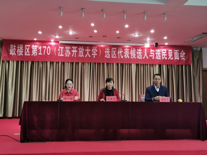 为了让选民更加全面、充分地认识和了解代表候选人的真实情况,11月26日上午,江苏开放大学在东校区图书馆5楼报告厅组织召开鼓楼区第三届人民代表大会代表候选人与选民见面会。见面会由江苏开放大学党委副书记、副校长金丽霞主持。两位正式代表候选人侯新宇、黄一斓出席会议,本选区选民代表和部分选民65人参加见面会。