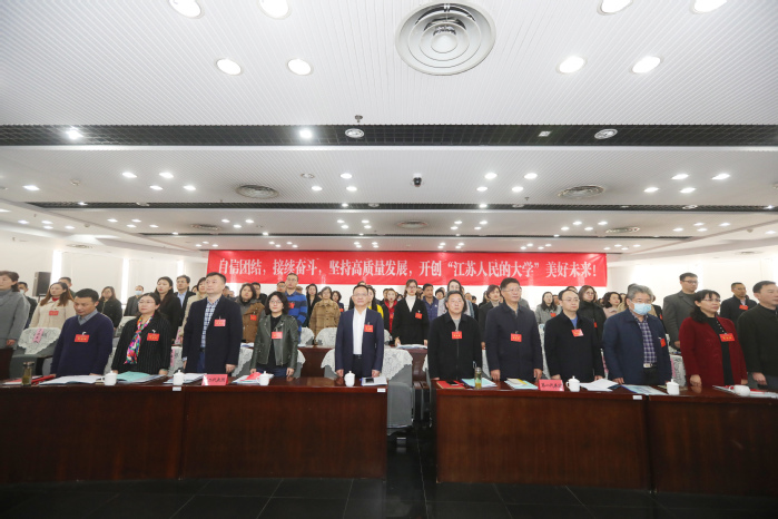 会议号召,全校教职工以习近平新时代中国特色社会主义思想为指导,贯彻落实学校第二次党代会精神,全面推进“十四五”规划落实,紧紧围绕中心工作,以高度自觉的主人翁意识,自信团结,接续奋斗,开创“江苏人民的大学”美好未来,以实际行动迎接党的二十大胜利召开!