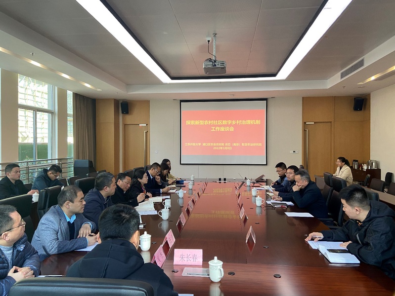 为了充分发挥我校促进乡村振兴方面的优势,积极承担服务地方经济的责任与担当,在浦口区成为首批国家数字乡村试点的背景下,聚焦第四轮省农村改革试验任务“探索新型农村社区数字治理机制”,3月8日上午,我校信息化建设处牵头积极对接浦口区农业农村局,组织开展工作座谈会。浦口区农业农村局科技教育科科长杨基楼、农芯(南京)智慧农业研究院副院长吴文彪、江苏开放大学教务处处长钱琦、科技处处长兼建筑工程学院院长侯新宇、宣传部部长兼马克思主义学院院长季海菊、环境生态学院院长干方群、信息化建设处总工程师王小军、社会教育处副处长吴杰、信息工程学院副院长黄黎、商学院副院长朱长春、公共管理学院副院长汪洋等参加会议。