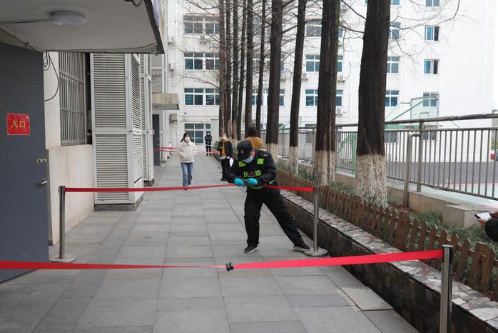 演练以进入校门发现人员体温异常、校园封闭期间健康体温监测时发现人员体温异常、某学生在校内得知其为密接者、某学生“苏康码”被赋为黄码几个情景为背景展开应急处置演练。演练过程包括应急准备、疫情发现、疫情报告、病人转诊、隔离处置、现场消杀等,做到了演练情景的真实还原。