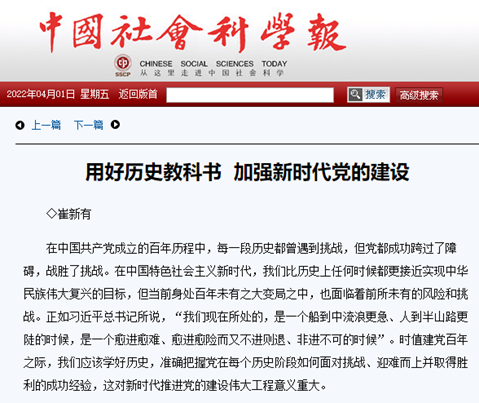 4月1日,《中国社会科学报》专版刊登我校党委书记王建明、校长崔新有 “百年党史推进社会主义现代化事业”系列文章。