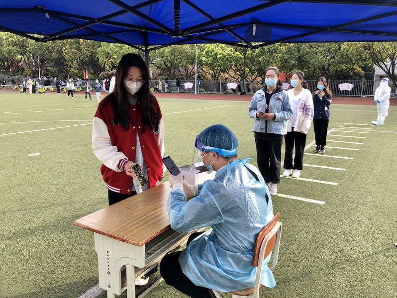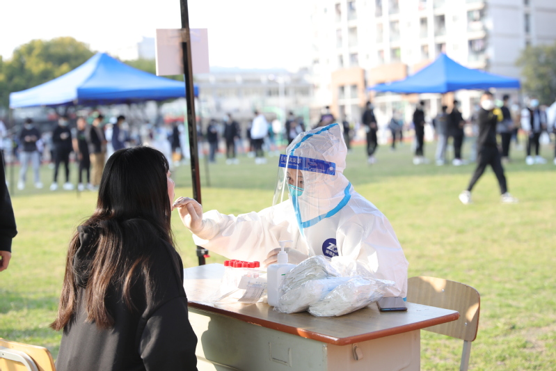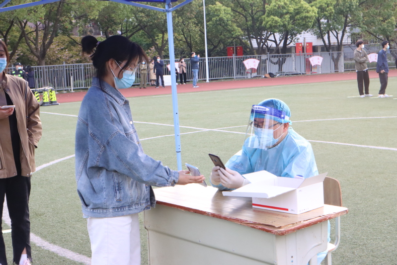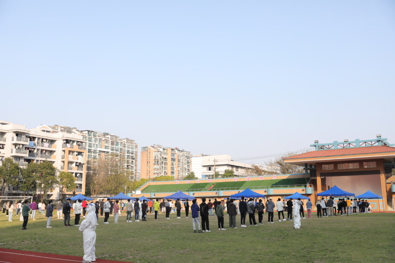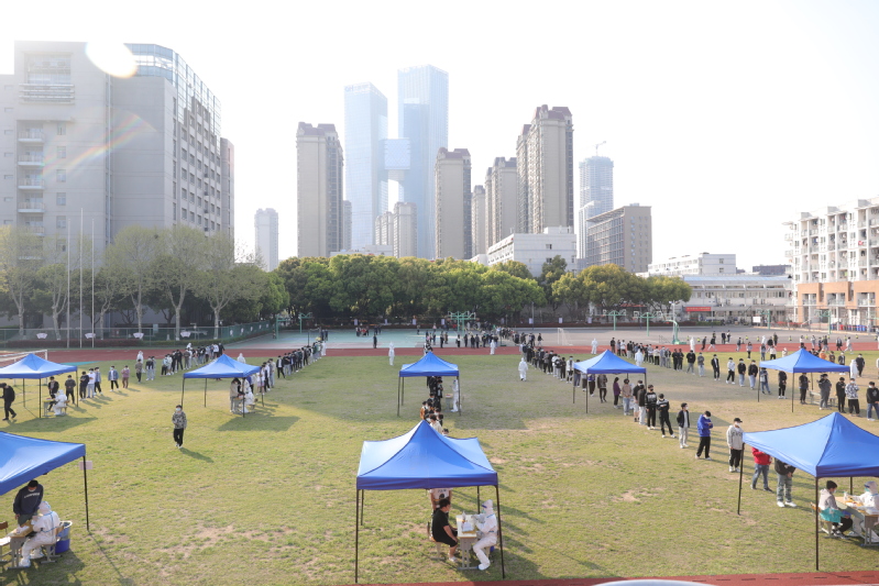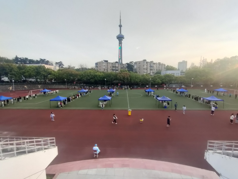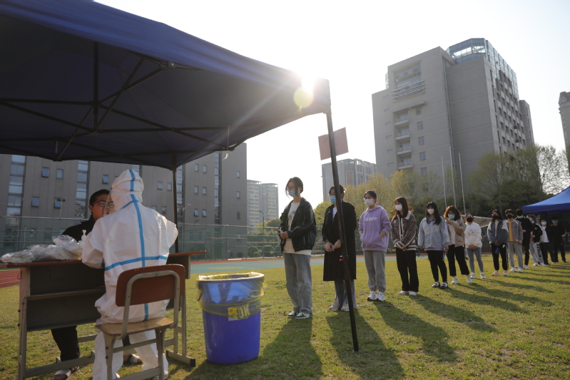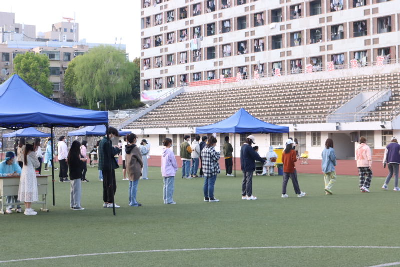 在得到核酸检测演练开始的命令后,两个校区所属各学院组织学生分批依次有序参加核酸检测演练。学生在检测过程中全程佩戴口罩,保持宿舍操场两点一线,保持一米线距离、出示苏康码和检测码,服从志愿者安排引导,检测完成后有序离场,返回宿舍。