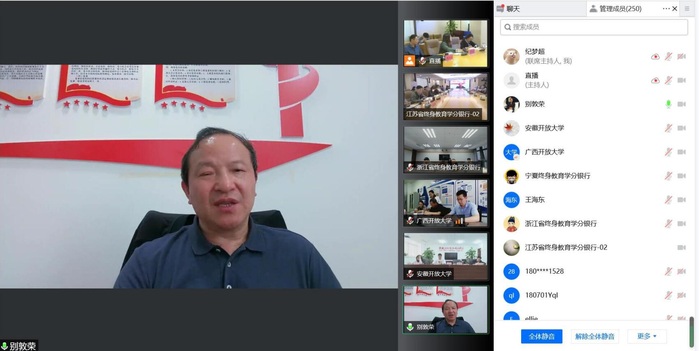 本次论坛邀请了国内4位学分银行建设和教育研究领域的权威专家,江苏开放大学校长崔新有、江苏省教育厅语言文字与继续教育处副处长王嵘和调研员张晓彦,以及浙江开放大学副校长卢文辉,福建开放大学副校长李正光、北京开放大学副校长蔡大鹏,河南开放大学副校长孔凡士,辽宁开放大学副校长李冬青,成都开放大学副校长曾垂刚,广西开放大学副校长刘绍英、青海开放大学副校长刘青、新疆开放大学副校长崔军分别在线下线上出席了本次论坛。全国学分银行建设进展调查参与单位、江苏省终身教育学分银行合作联盟单位以及分行试建单位等200余家单位线上参与了本次论坛。论坛由江苏开放大学副校长吴忠宁主持。