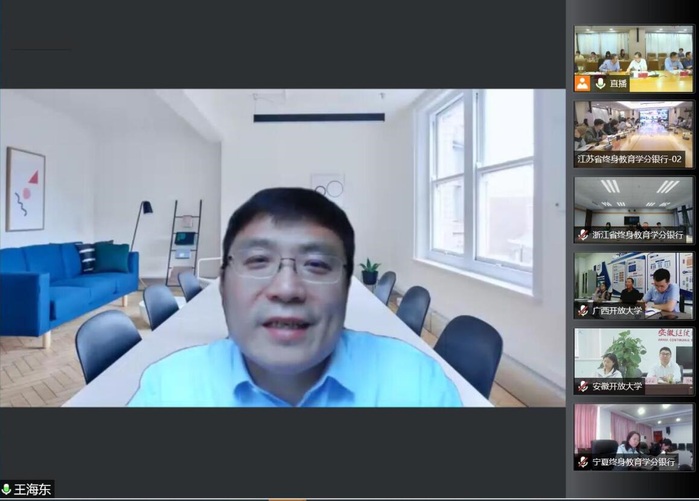 教育部教育考试院科研处副处长王海东研究员总结了目前全国学分银行探索的进展,认为学分银行建设取得了实质性进展,发生了不可逆转的格局性变化,全面拓展了个人的学习活动,导向学生学习流动机制,推动学校学分制改革,转向更为宽松和人性化的学校管理制度,调整人才培养方案及设计学习成果导向的教学方案,提供更加丰富和多样化的学校课程,并结合“十四五”规划展望了未来5-10年学分银行的发展方向。