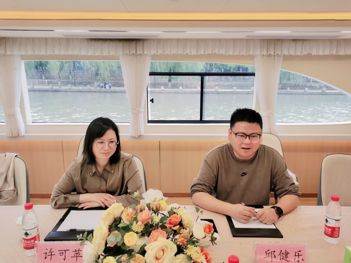 南艺后街文化旅游运营有限公司总经理邱健乐对金丽霞一行表示热烈欢迎,他介绍了公司发展基本情况以及公司未来前景规划,表达了希望在企业员工继续教育、就业服务、秦淮河沿岸文化治理、文化产业项目建设运营等方面与我校深入合作的意愿。南艺后街文化旅游运营有限公司成立于2019年,主要经营文化、商业、旅游及相关产业的项目开发、管理,致力于打造南京秦淮河沿岸开放文化艺术生活街区。