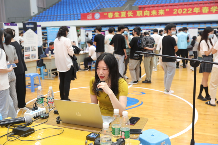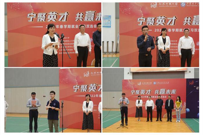 在开场仪式上,金丽霞对参加双选会的领导、企业及其代表表示欢迎和感谢,她表示,学校一直高度重视毕业生就业工作,为毕业生提供不断线的就业创业指导服务,勉励毕业生树立正确的成才观、就业观,努力实现早就业、就好业。周兵分析了当前严峻、复杂的就业形势,阐述了南京市、鼓楼区出台了助力毕业生就业创业的一系列政策和举措,欢迎同学们在南京、在鼓楼找到合适的就业岗位。北控水务集团人事经理蔡啊丽站在学姐的角度,鼓励毕业生“走出去”,主动求职、积极就业。毕业生代表郑家滨表示,要努力将所学的理论知识和专业技能应用到实践中去,努力在工作岗位上实现自己的人生价值和社会价值。