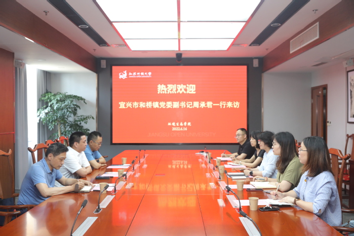 张晓简要介绍了我校的历史沿革、办学情况、人才队伍建设、战略规划等基本情况。重点介绍了我校发挥办学优势,扎根江苏大地,在人才培养、科学研究、社区教育等多方面服务社会,助推地方人才队伍建设、社区文化建设,促进地方经济社会创新发展。希望能与宜兴市和桥镇携手合作,构建多层次、宽领域、全方位的合作格局。干方群院长介绍了学院专业建设、师资队伍、办学特色和优势、社会服务等方面的具体情况,强调学院要发挥教育资源优势,助推地方人才振兴和产业振兴。