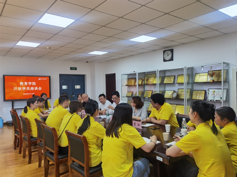 2022年6月18日中午,教育学院组织应邀参加毕业典礼的封丽娟、邵书敏、吴晓玥、端玉婷、蒋骁睿等开放学员召开座谈会,党总支部书记罗殷主持会议。学校纪委书记顾新华、学院全体领导、部分教师代表参加座谈,共同围绕如何进一步办好学历继续教育进行面对面交流。