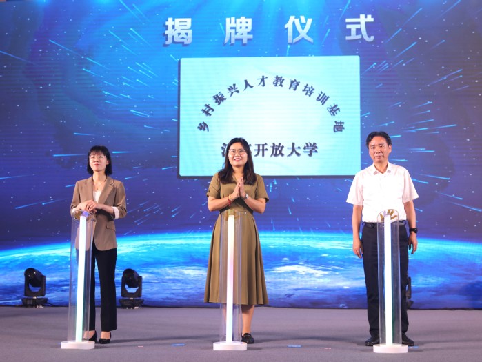 我校环境生态学院院长干方群、宜兴市人力资源和社会保障局局长花强、共青团宜兴市委员会书记史香莲为“乡村振兴人才教育培训基地”揭牌,实现乡村振兴领域资源共享、人才共育、合作共赢。
