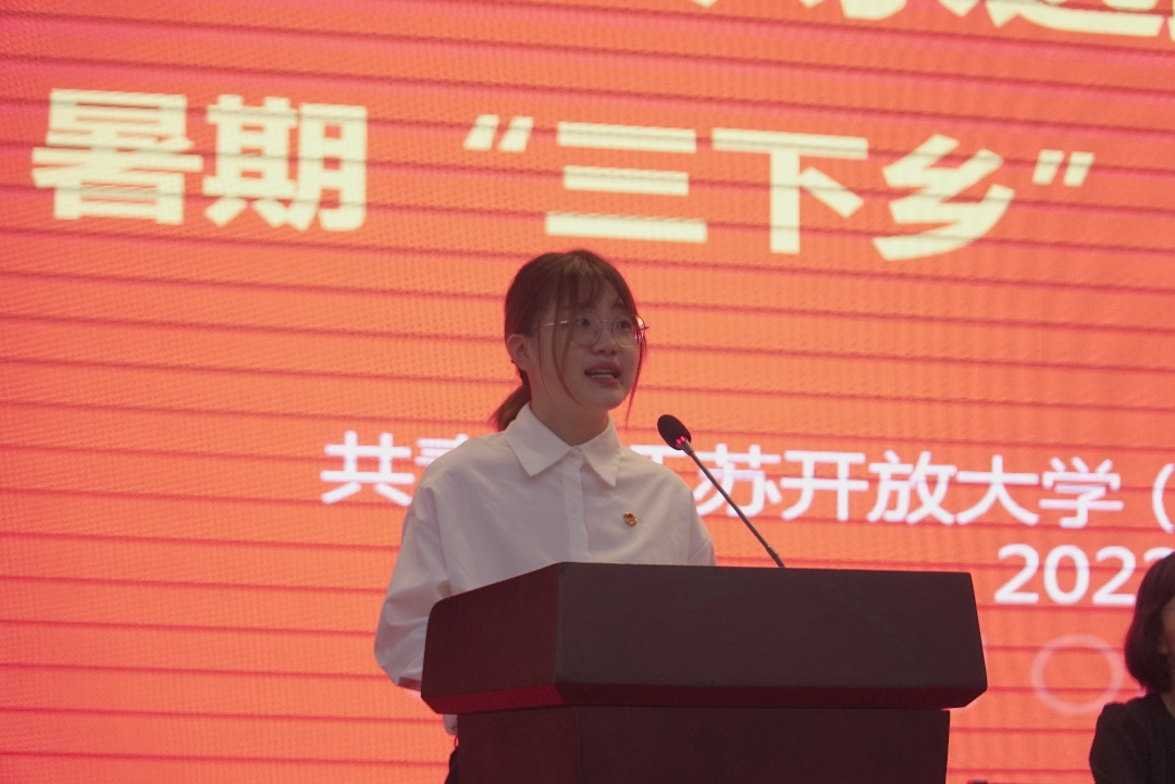 商学院徐娴同学作为此次社会实践团队学生代表,分享了以往在暑期社会实践中的经历与经验,并号召同学们以最饱满的热情投入到暑期社会实践中去。