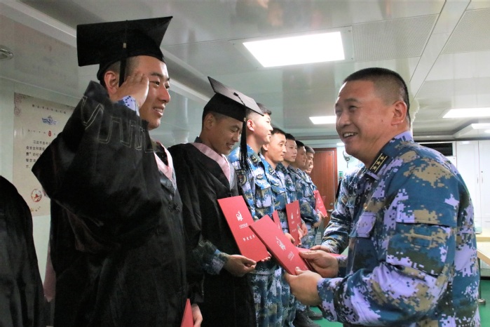 图3 盐城舰舰长为毕业生颁发毕业证书