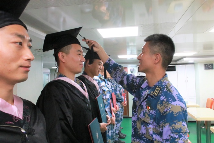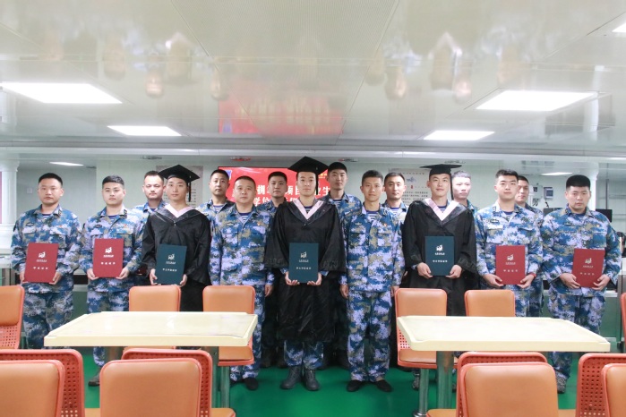 近日,我校举办2022届毕业典礼暨学位授予仪式,合作单位海军盐城舰政治委员罗代裕与毕业生代表杨世杰以录制视频方式出席会议并发言,盐城舰官兵学员在舰艇上集中观看典礼。