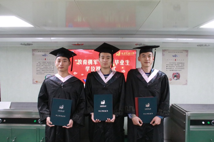 守疆卫海、护航深蓝,盐城舰学员们弄潮搏浪、为国争光。与此同时,在江苏开大的学习之旅却遇到作训无时、联网不便的挑战,学业进展受阻。我校教务处针对这一特殊难题,充分考虑疫情防控常态化的要求和部队的特殊情况,认真研究部队官兵学生的需求与困难,建立个性化教学支持服务机制,为盐城舰学员的海上学习之路保驾护航。一是会同盐城开放大学、相关处室和学院,制定专门“教育拥军”实施方案,提出有关问题的一揽子解决办法。二是统筹线上线下教学活动和资源,反复研讨,精心研制适合舰艇学员的课程学习记录册和电子资源。三是三度送教送考上舰,组织盐城开放大学、我校相关学院的老师们多次奔赴一线,为学员答疑解惑,安排课程考试,指导论文写作,开展毕业答辩,切实解决学员学业中的困难。四是对部队学员实行免收注册费、学分费、考试费等费用的措施,将江苏开大拥军爱军精神落到实处。经多方不懈努力,今年六月,盐城舰18名专科舰员和7名本科舰员如期毕业,更有3名舰员取得学士学位,盐城舰的官兵们深受鼓舞,学习热情高涨。“教育拥军”项目有力提升了舰队的战斗力、凝聚力,得到官兵的大力拥护与赞许。