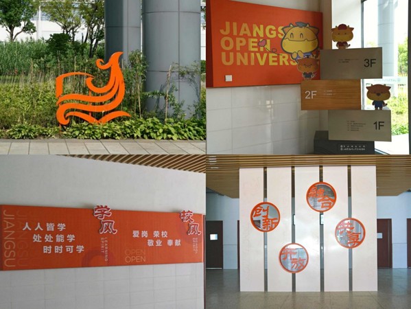 “校徽旁边围绕的都是新种的蔷薇花吗?”“橱窗已经发布了最新的江苏开大招生简章啦?”“这个凤凰校标、吉祥物摆放的位置真好!”一声声赞叹,来自踏入昆山开放大学校园的调研组成员们,“让学习成为一种生活方式”的校训被安置在了学校核心的图书馆最显眼的“C位”,吉祥物“牛MOMO”出现在图书馆功能区域指示处。
