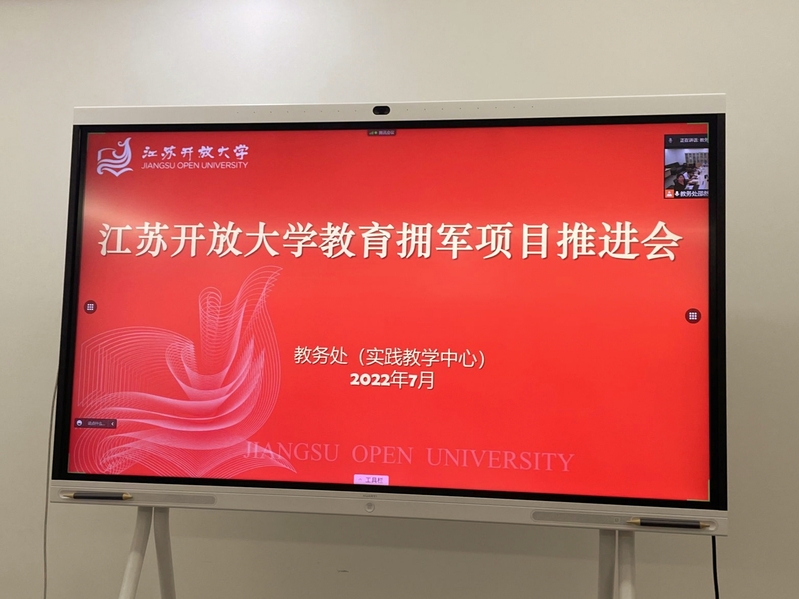 “八一”前夕,7月26日下午,我校在定淮门校区图书馆楼703室召开2022年度“教育拥军”项目推进会。常州开放大学副校长朱丹平、南通开放大学副校长薛亮、泰州开放大学副院长杨智红、各相关市县开放大学教务处主要负责人和工作人员,省校招生工作处负责人,公共管理学院、商学院、外国语学院分管教学副院长参加了本次会议。会议由教务处组织召开,教务处处长钱琦主持。