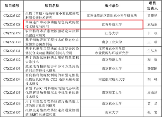 日前,江苏省财政厅下发《关于下达2022年省农业科技自主创新项目资金的通知》(苏财农【2022】64号),我校“草莓连作障碍多功能绿色高效防控技术研发与应用”项目进入支持范围,这是我校首次获省农业科技自主创新资金立项。