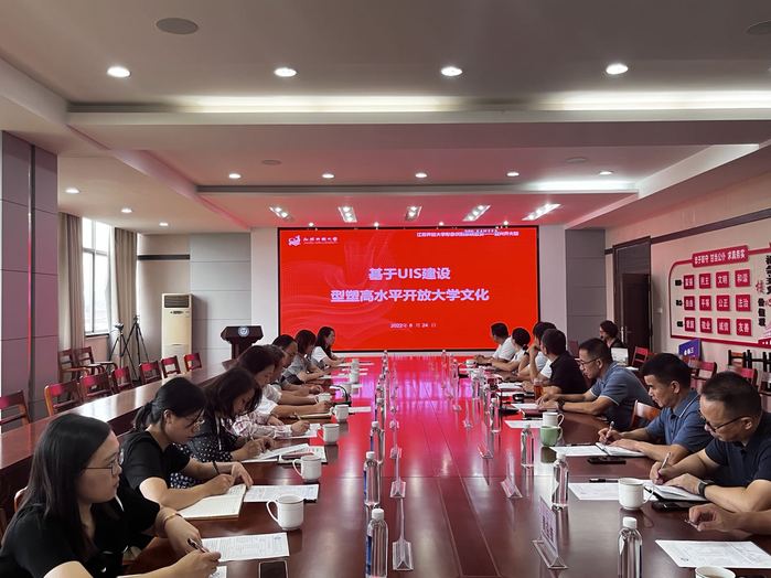 座谈会上,董昕灵以《基于UIS建设,型塑高水平开放大学文化》为主题,从“学校文化建设的使命任务”“形象识别系统建设成果”“形象识别系统宣传贯彻”三个方面进行了文化宣贯,并向宜兴开大校领导赠送了吉祥物“牛MOMO”。