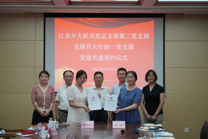 接着,无锡开大学生工作处、教务处、党群工作处、团委等相关部门负责人分别介绍了无锡开大在推动学校UIS宣贯、推动体系建设、推动毕业生就业、推动“三区联动”以及推动开放学员思政教育工作和团学共建等方面的经验、做法。双方展开了充分的交流和探讨。会上,江苏开大机关党总支部第二党支部与无锡开大行政第一党支部进行了党建共建签约仪式。
