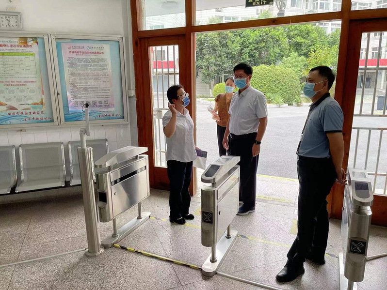 顾新华一行以“四不两直”的方式,先后查看了校区门岗、教学楼、学生公寓、食堂、医务室、浴室、快递点等疫情防控重点部位,详细询问了校园出入管理、餐饮服务保障、校园消杀、涉疫地区学生暂缓返校等措施落实情况。
