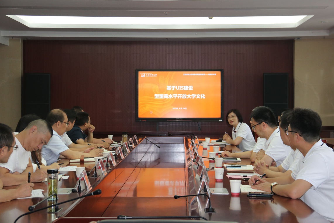 会上,牛玉韬副校长作了题为《基于UIS建设 型塑高水平开放大学文化》的专题报告。他从学校文化建设使命任务、形象识别系统建设成果、形象识别系统宣传贯彻三个方面切入,用一个个生动有趣的故事展示了学校文化建设从顶层设计、落地生花最后到实践推广的背景、内涵与过程。
