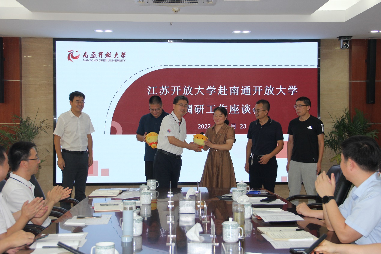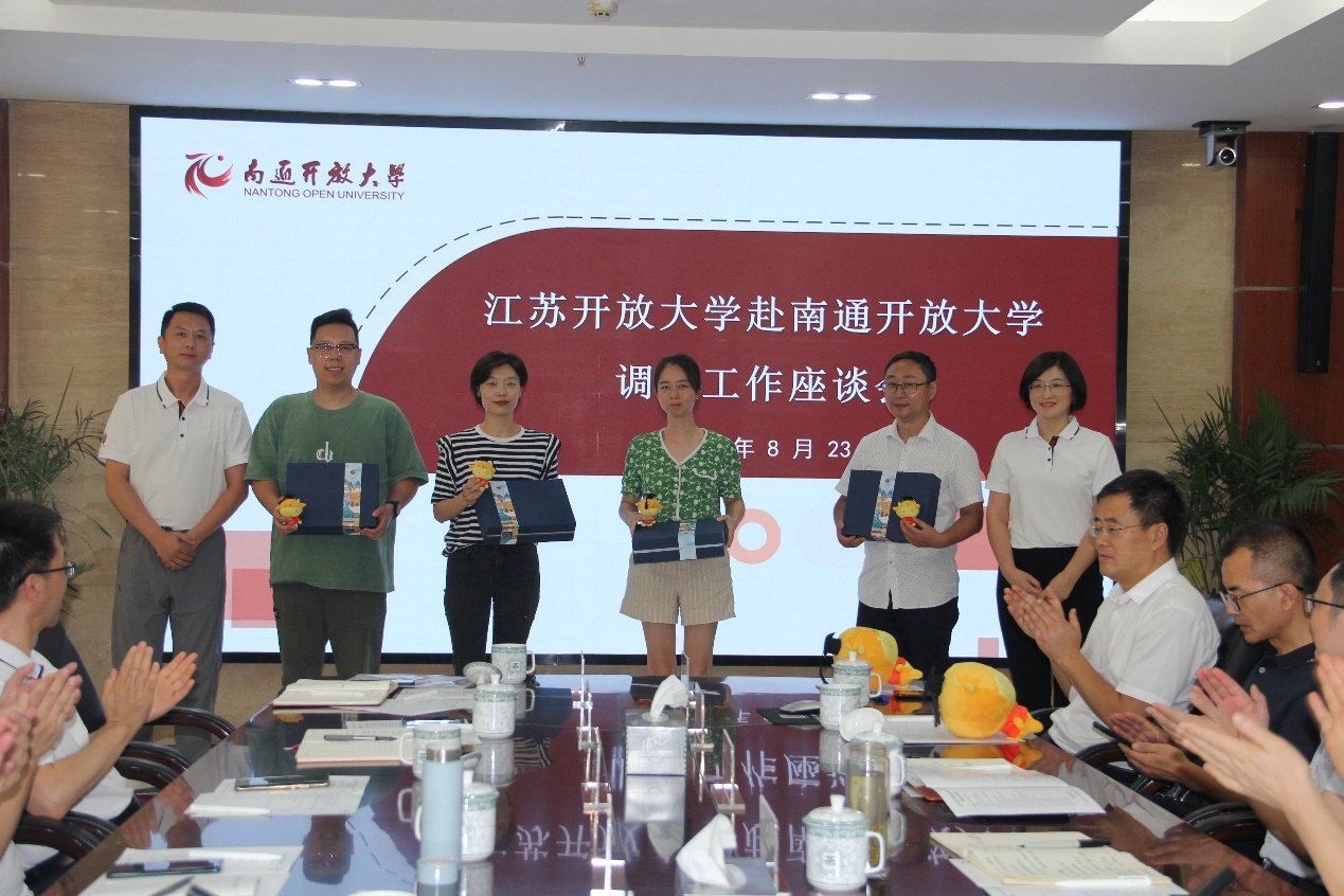 8月23日上午,调研组前往南通开放大学开展座谈会,南通开放大学、启东开放大学、海门开放大学、如皋开放大学、如东开放大学五家市县开放大学参与了座谈。