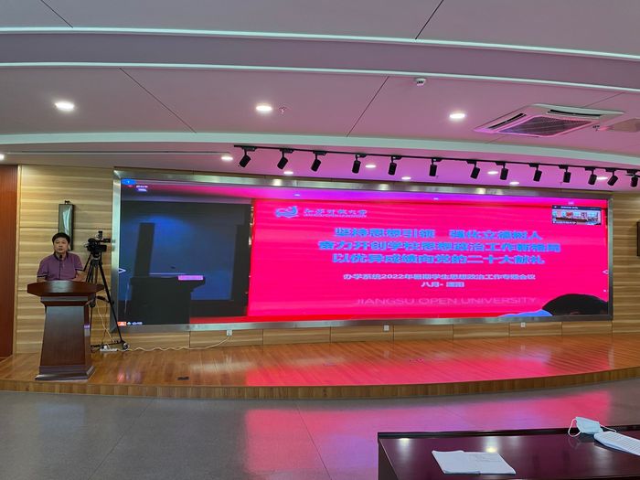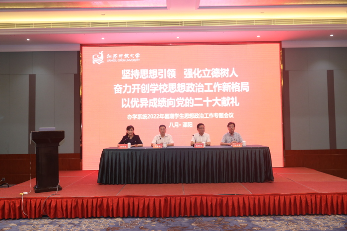 为深入学习贯彻习近平新时代中国特色社会主义思想,全面落实党中央《关于新时代加强和改进思想政治工作的意见》,提升办学系统学生思想政治工作质量,以优异成绩向党的二十大献礼,8月22日上午,学校在溧阳召开2022年办学系统暑期学生思想政治工作专题培训会议。校党委书记王建明、校长崔新有出席会议,溧阳开放大学党委书记、校长王云清致辞,校党委副书记、副校长金丽霞主持会议,分管思想政治、宣传工作、学生工作、团委工作和就业工作的校领导、思政研究会理事及全体学工战线700余名同志参加会议,43个市县开放大学在分会场通过网络视频同步参会。