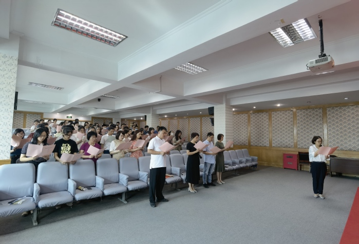 最后董昕灵副书记代表学院向全体教职员工致以节日的问候,向受表彰的教师表示衷心的祝贺。同时,借教师节到来之际,董昕灵副书记带领全院教职工宣誓并签署师德师风承诺书,强调全院教职工要牢记“立德树人”初心使命、严格遵守《高等学校教师职业道德规范》、《新时代高校教师职业行为十项准则》等文件要求,切实增强教师教书育人的责任感、使命感和荣誉感,务实干事、久久为功,为高水平开放大学建设、为学院高质量发展贡献力量。