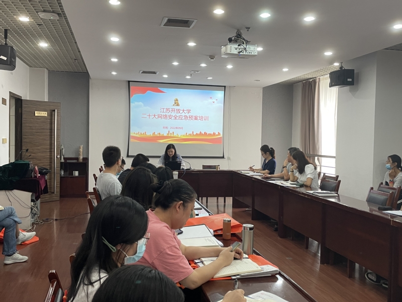 会上,全体参会人员通过观看网络安全云课堂发布的《个人信息保护法》和《网络安全法概况和基本理念》学习视频进行网络安全知识培训。信息化建设处郝喆重点讲解了江苏开放大学二十大网络安全应急预案处置流程和应对措施。